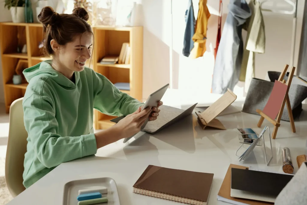 Uczeń też aktywnie pracuje na ekranie – dostaje tablet graficzny, by ćwiczyć pisanie i rozwiązywać zadania wspólnie z nauczycielem. To buduje zaangażowanie i pewność przed maturą.