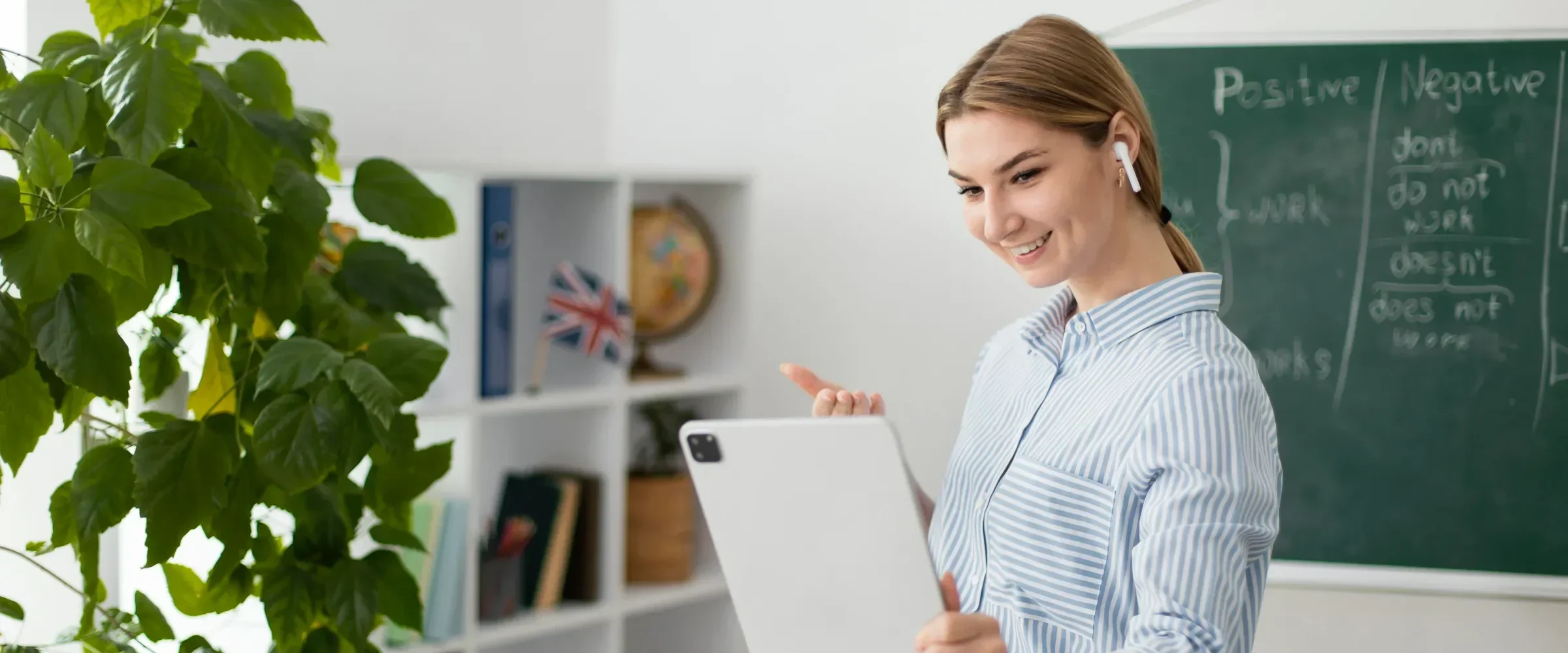 W wybranych pakietach uczeń otrzymuje tablet graficzny, dzięki czemu może aktywnie uczestniczyć w zajęciach – pisać, zaznaczać i rozwiązywać zadania razem z nauczycielem